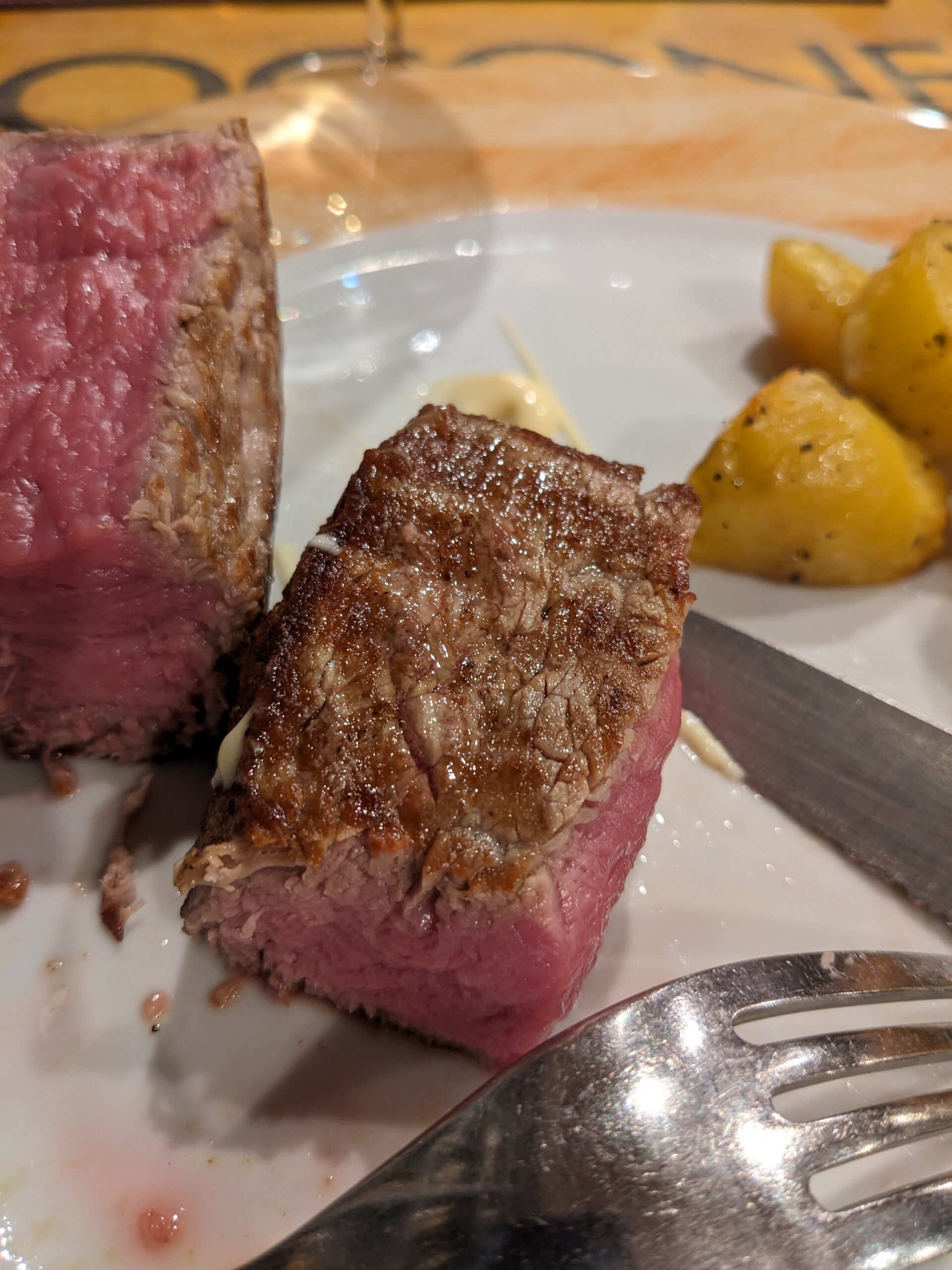 Yesterday was my birthday, the last one with 4 in the front. All 3 Bankses headed out to Da Pasquale again, which is now my favourite place to eat in Lucca. Nonna Clara is great, but Pasquale’s place is just such a treat in every way. The olive oil on the table is fantastic, the service so good, they should bottle and sell it. The food. Where do I start. Third time in a row Florek had their beef tartare and was forced to share it with us. Grilled filled steak, my main last night so tender, it must have been resting a long time. Delicious truffle mayo on the side, of which I asked for some more, sooooo good.